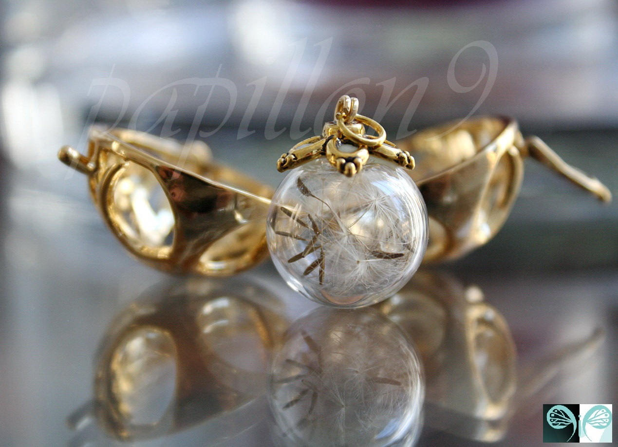 Tree of Life locket Glow in the Dark / 1 Glass Bubble Pendants / Dandelion seeds /
